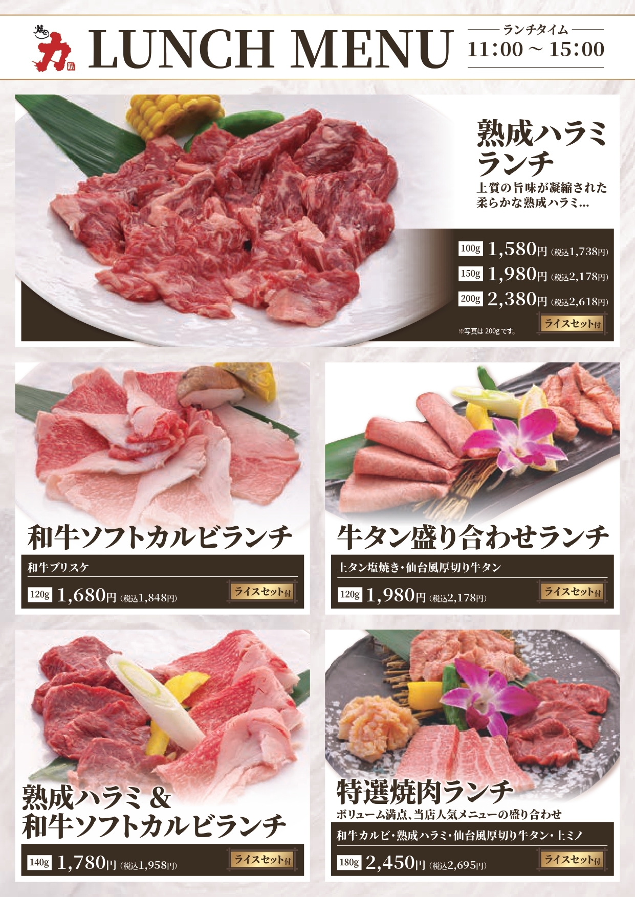 ◎特選ロース◎特選上カルビ◎和牛カルビ◎特選極牛タン◎仙台名物厚切り牛タン